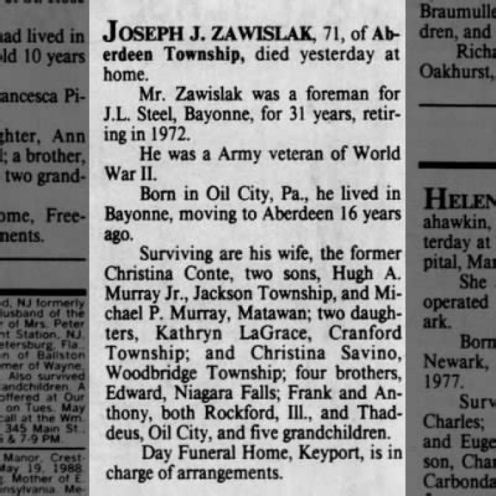 What is "joseph zawislak obituary"?