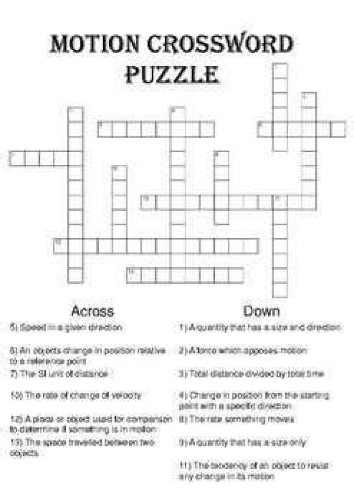 • Benefits: Motion crossword puzzles can help you learn about motion and physics, improve your problem-solving skills, and be a fun and challenging way to pass the time.